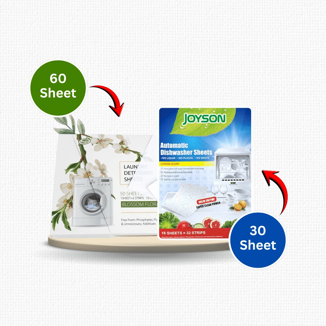 Two essentials, one eco bundle — effortless laundry freshness and spotless dishes without the plastic waste.